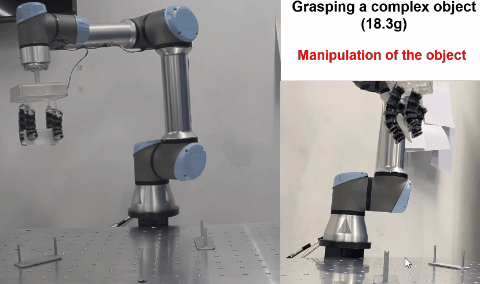 软体机器人手不但可以实现轻质量目标的抓取,还能组装起小房子,展现了该类软体机器人手灵巧的操作能力: